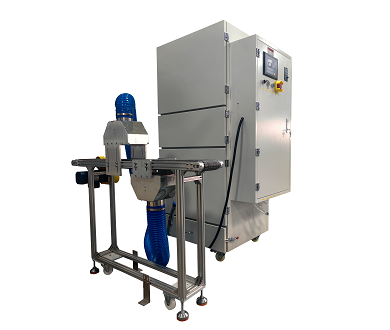 該除塵係統可以根據客戶要求定製各種上下料及輸送裝置,整機係統配備觸摸屏、PLC、各種傳感器,實現各種自動控製及聯機控 製功能。可配合接入機械手或伺服驅動及滑台模組實現無人化全自動上下料,減少人工,大幅提高生產效率。