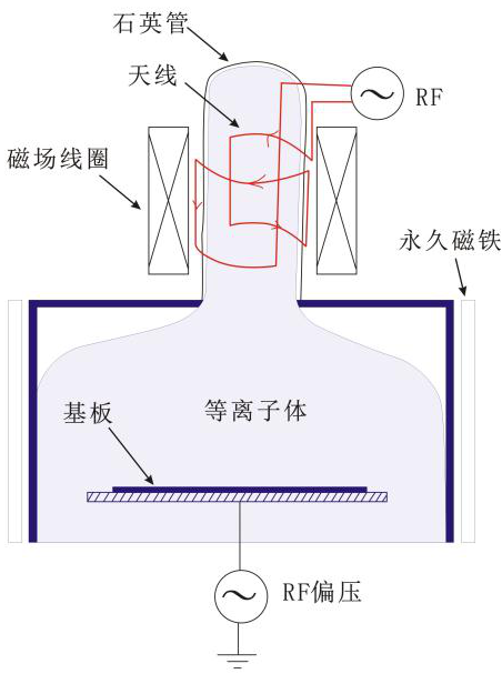 圖1 利用電子回旋共振在低氣壓下麵形成的ECR等離子體
