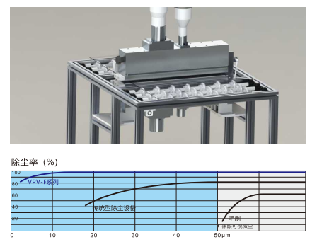 無接觸幹式除塵技術憑借對精密材料的保護性和高效環保的優勢,已成為高端製造領域不可或缺的關鍵工藝,尤其在追求 “零缺陷” 生產的場景中,其應用價值日益凸顯。