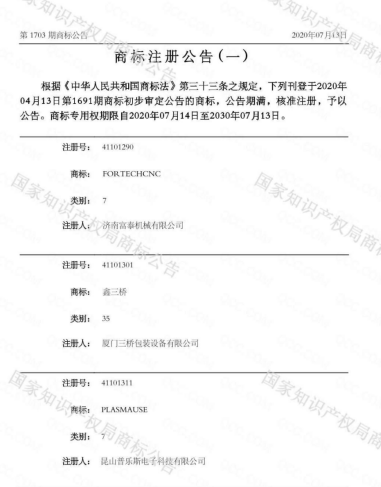 品牌興企!黄瓜视频下载APP视频黄瓜视频污在线观看機成功注冊“PLASMAUSE”商標